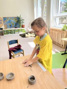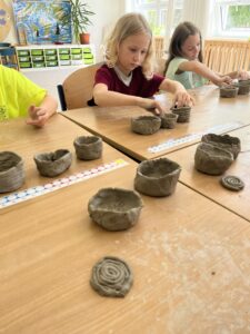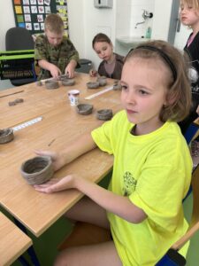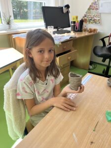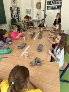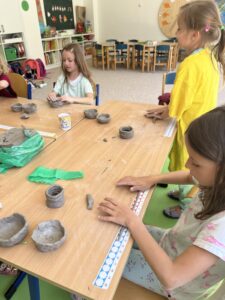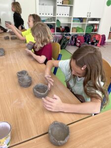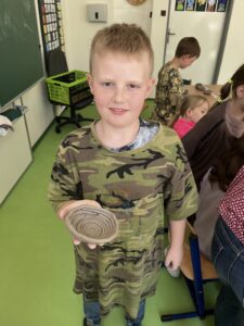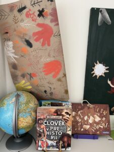 Celoroční projekt prvního ročníku se chýlí ke konci. Podstatnou část školního roku jsme věnovali prapočátkům vzniku života na Zemi a přičichli jsme společně ke způsobu života prvních obyvatel naší planety. Stavěli jsme přístřešky z přírodnin, věnovali se jeskynním malbám a keramické tvorbě, poslechli jsme si zajímavé přednášky, které nám zpracovali buď sami žáci, nebo odborníci z profesním zaměřením na archeologii a antropologii. Navštívili muzea v našem regionu a prohlédli si zajímavé artefakty související s tématem pravěku. Žáci si vyzkoušeli i různé techniky při výrobě nástrojů, stavění přístřešku z přírodnin a také v práci s keramickou hlínou. Pokusili se zhotovit nejen různé nádoby, ale i o ztvárnění postavy a zjistili, že to není jednoduchá práce. Produkty se nicméně všem povedly a těšíme se, že je využijeme na našem závěrečném představení, které společně nacvičujeme.