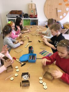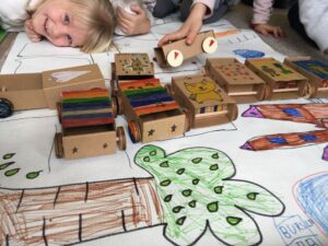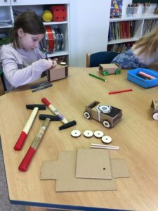 Již podruhé se naši žáci účastnili výtvarné dílny pod vedením Katky Hankové, která k nám přijela z Dizajnparku v Karlových Varech. Žáci si smontovali autíčka, vyzdobili si je, vyrobili silnice a vymysleli dokonce i kopírku na auta. A od té doby to v každé třídě o přestávkách jezdí!